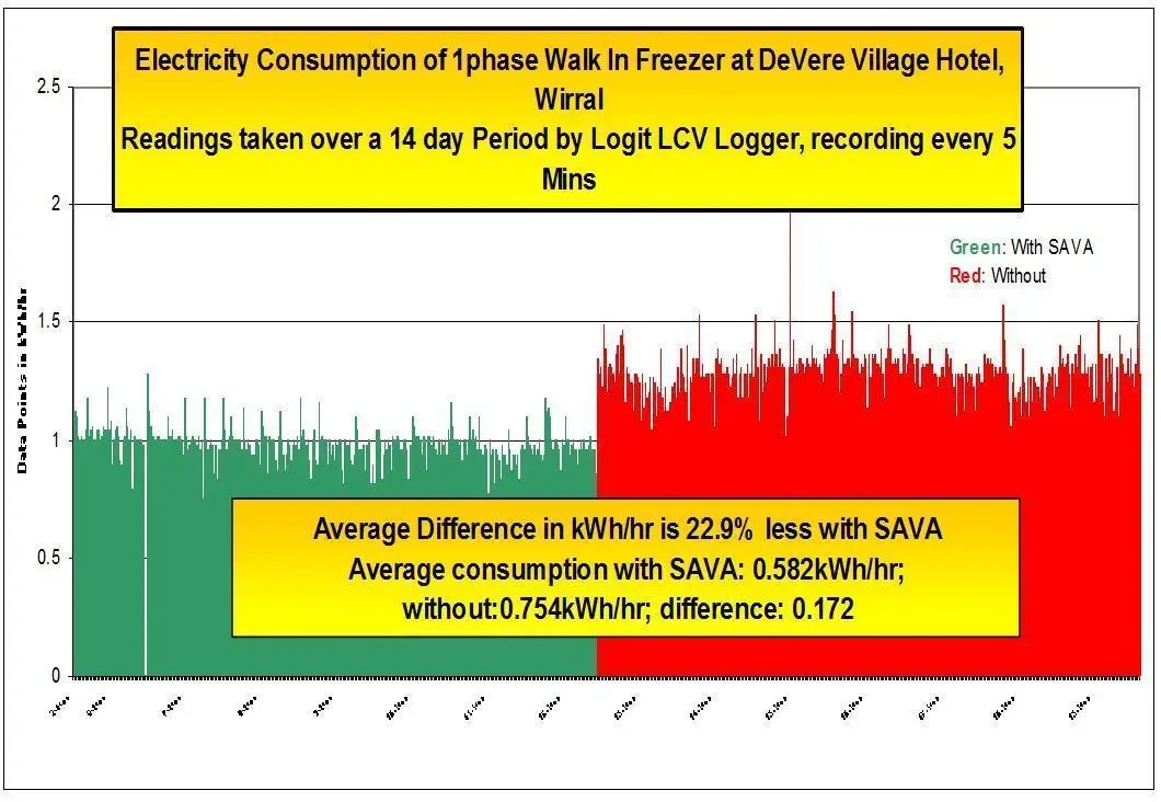 - The walk in Freezer saving of 22.9% with the SavaControl in circuit.