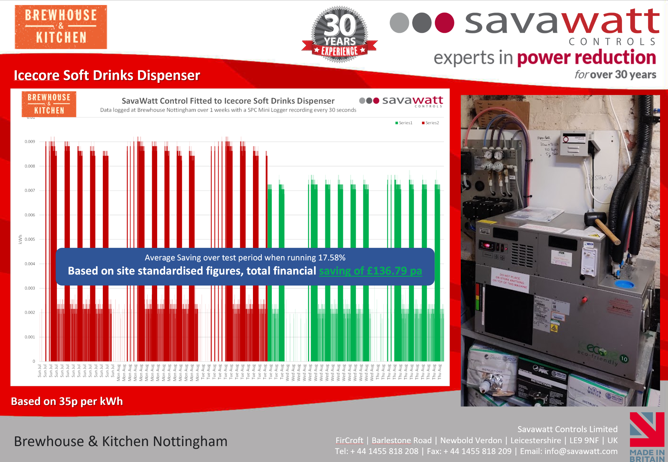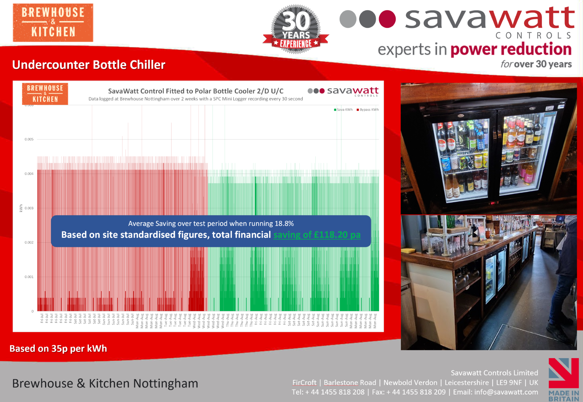 Following the success of the Nottingham trial, SavaWatt Controls were installed across additional Brewhouse & Kitchen locations. Across the estate, refrigeration units delivered strong and repeatable savings, helping the group reduce energy costs while supporting its commitment to environmental responsibility.