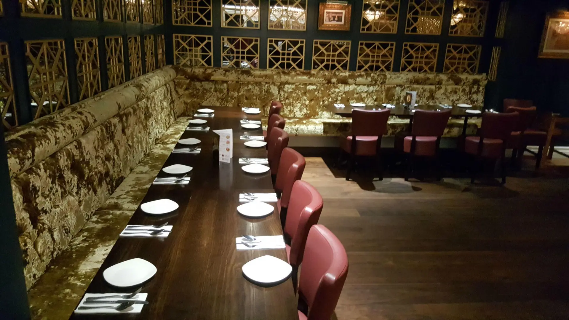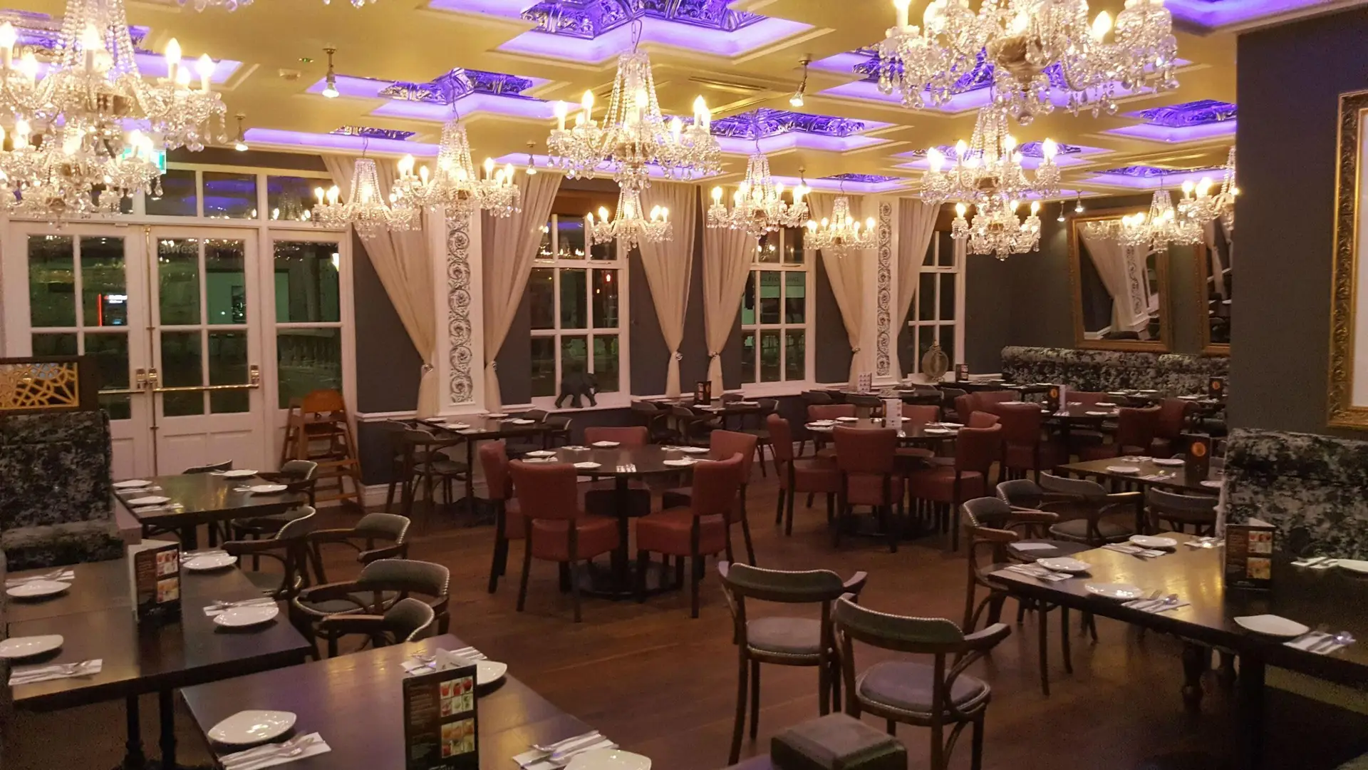 It has been converted and extended from a old pub in to a opulent restaurant on the high street. Such opulence can seen with huge chandeliers, deep rich purple banquette seating and walls decorated in classical Indian artworks. Its main beauty includes a glass-sided kitchen which is open for all to view.